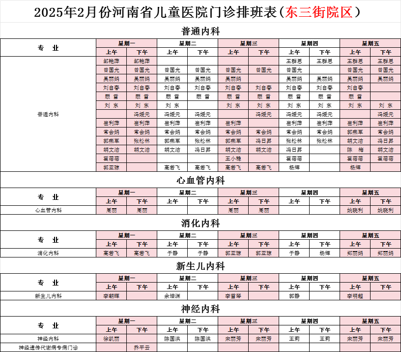2025年2月份河南省兒童醫(yī)院東三街院區(qū)專家坐診表