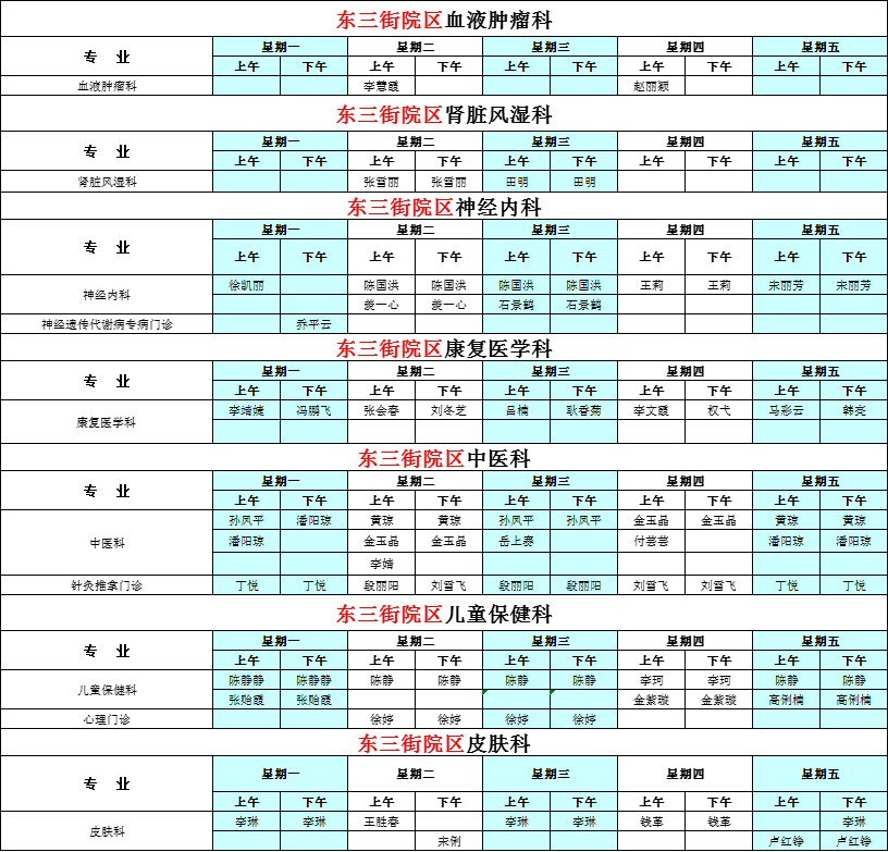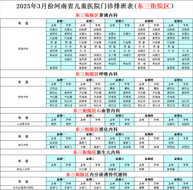 2025年3月份河南省兒童醫(yī)院東三街院區(qū)專家坐診表