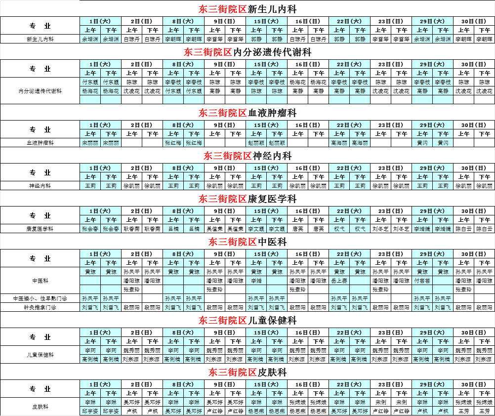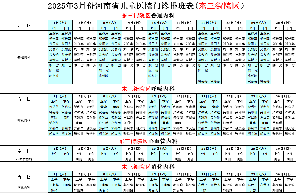 2025年3月份河南省兒童醫(yī)院東三街院區(qū)專家坐診表(周末)