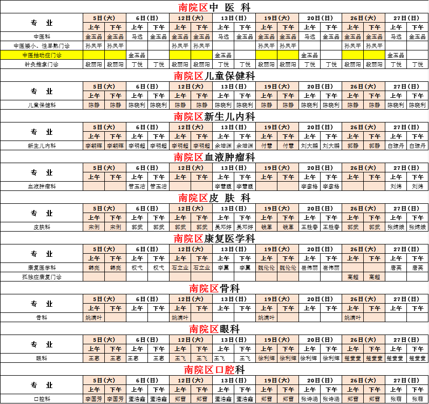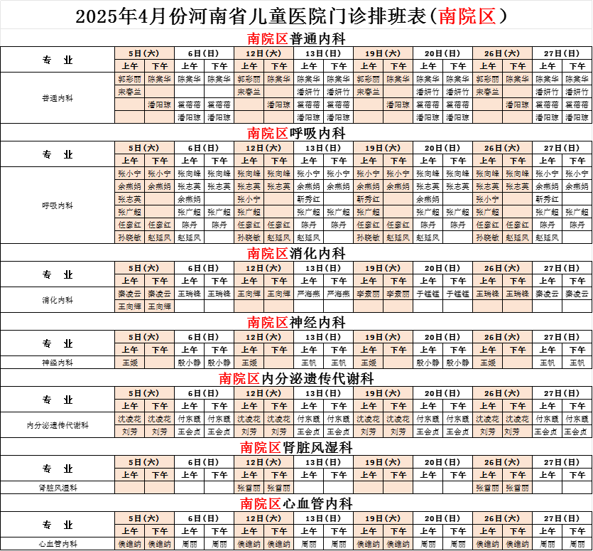 2025年4月份河南省兒童醫(yī)院南院區(qū)專家坐診表(周末)