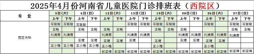2025年2月份河南省兒童醫(yī)院西院區(qū)專家坐診表(含周末)