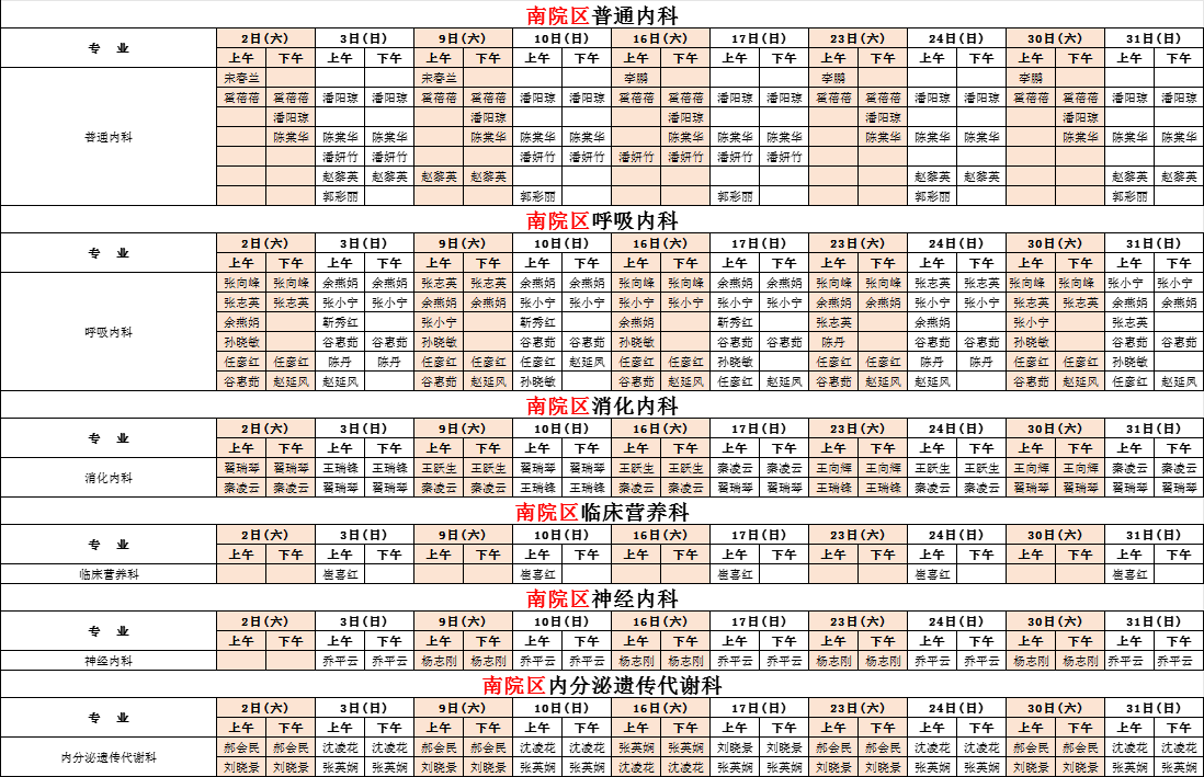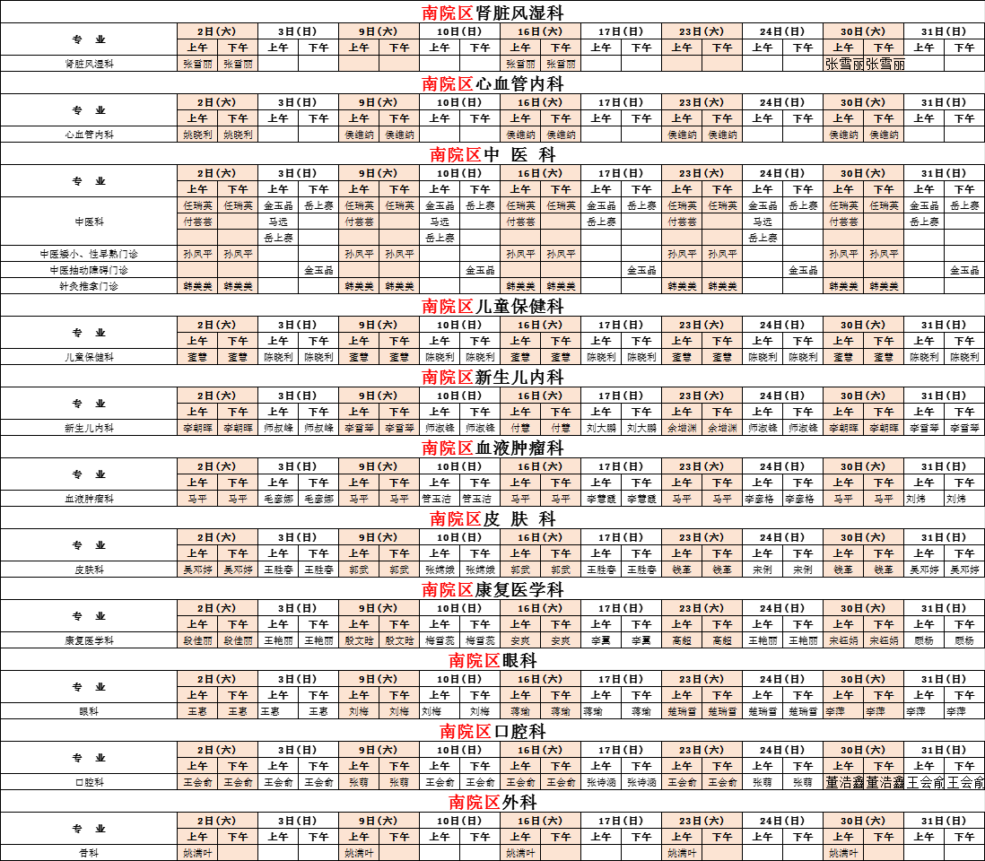 2025年8月份河南省兒童醫(yī)院門診排班表(南院區(qū))周末