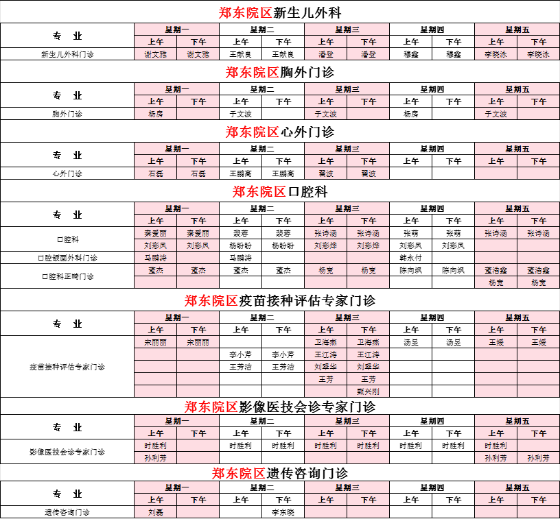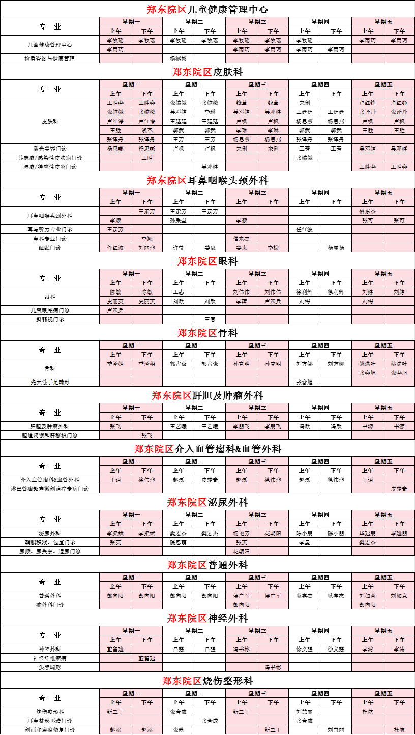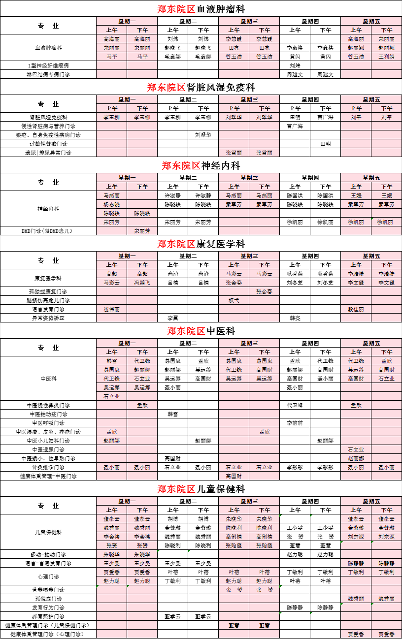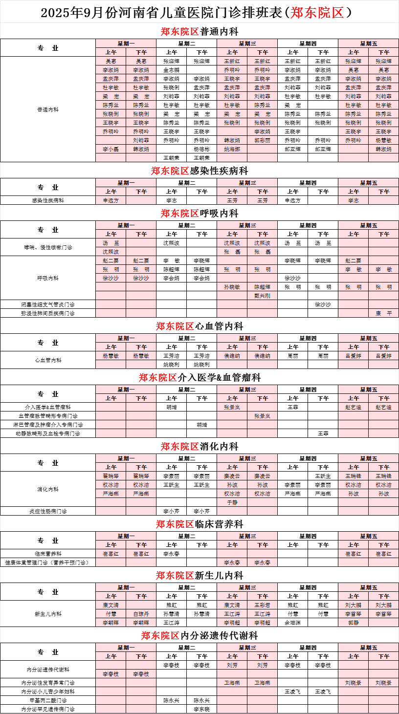 2025年9月份河南省兒童醫(yī)院專家坐診表(鄭東院區(qū))