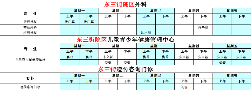河南省兒童醫(yī)院東三街院區(qū)2025年10月專家坐診表