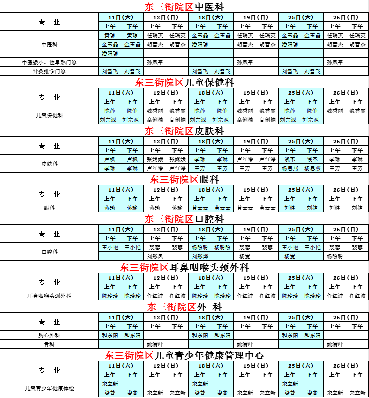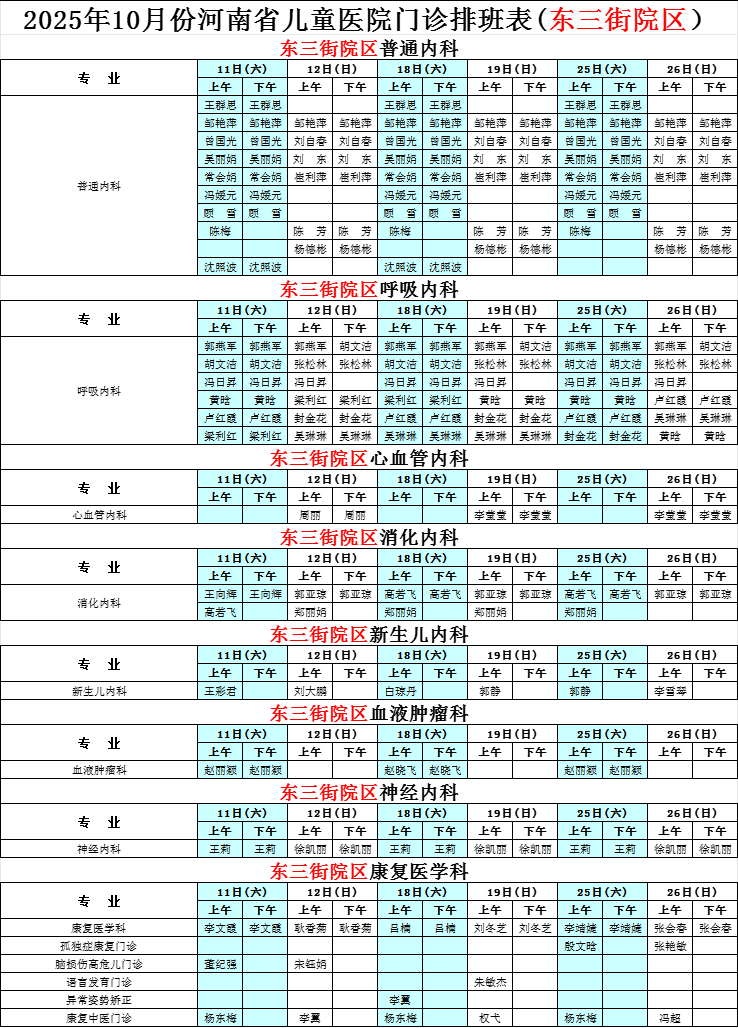 河南省兒童醫(yī)院東三街院區(qū)2025年10月專家坐診表(周末)