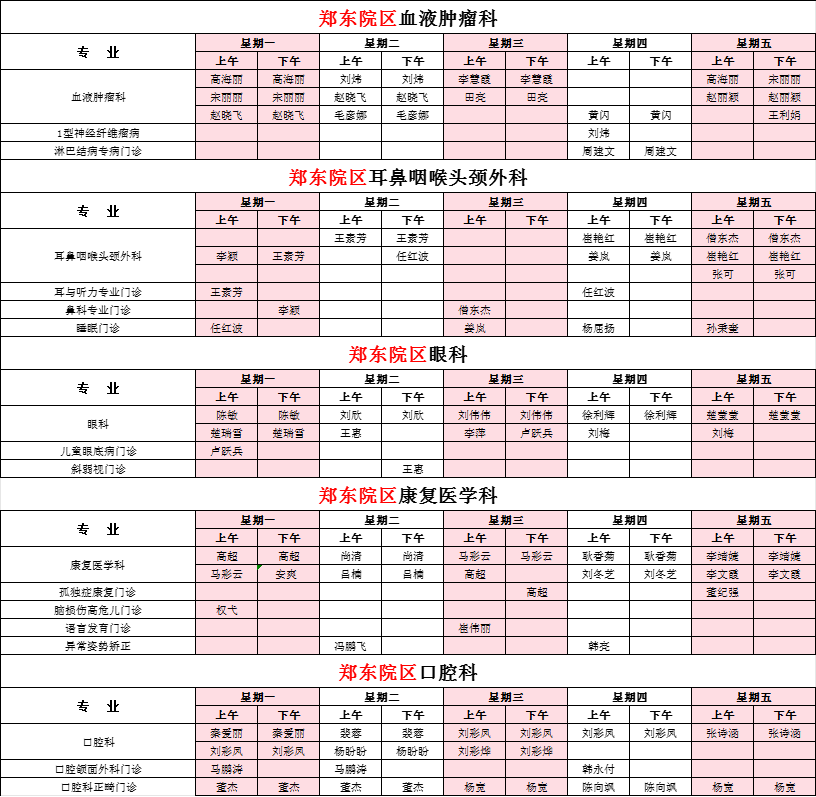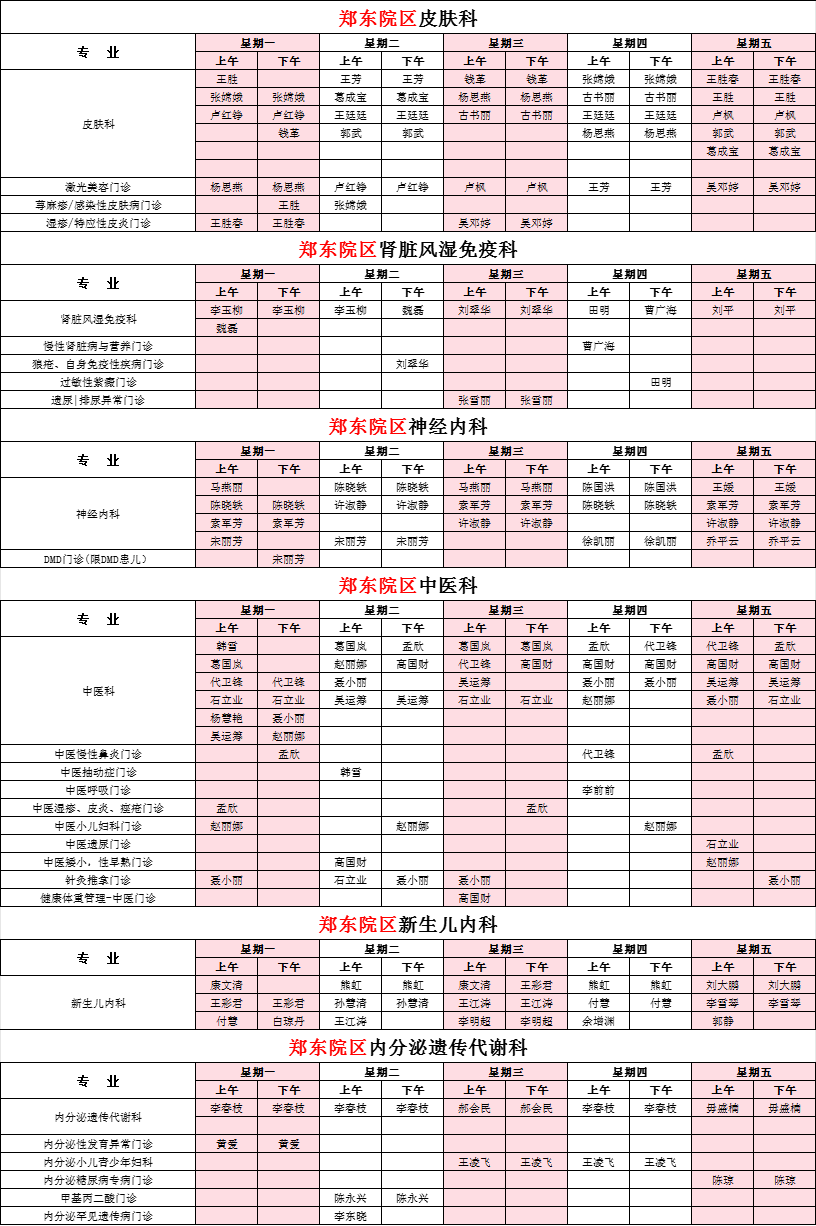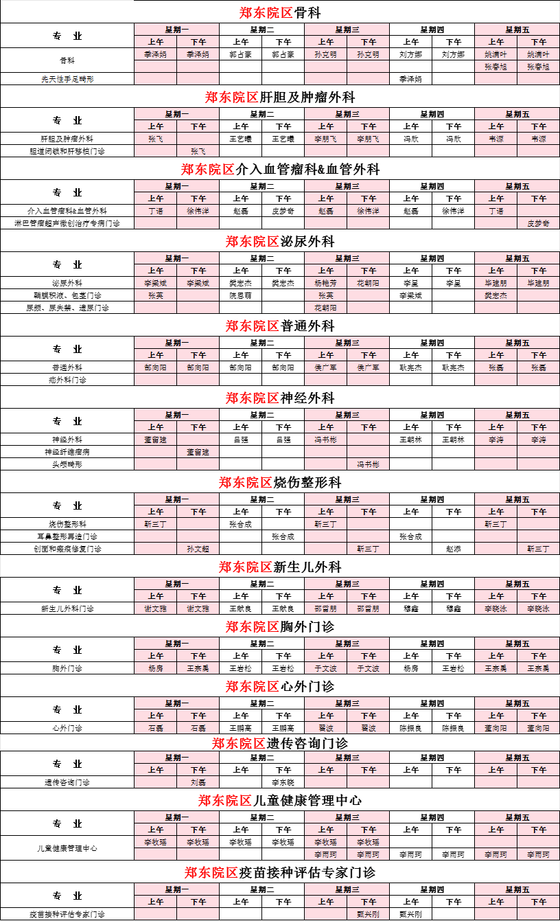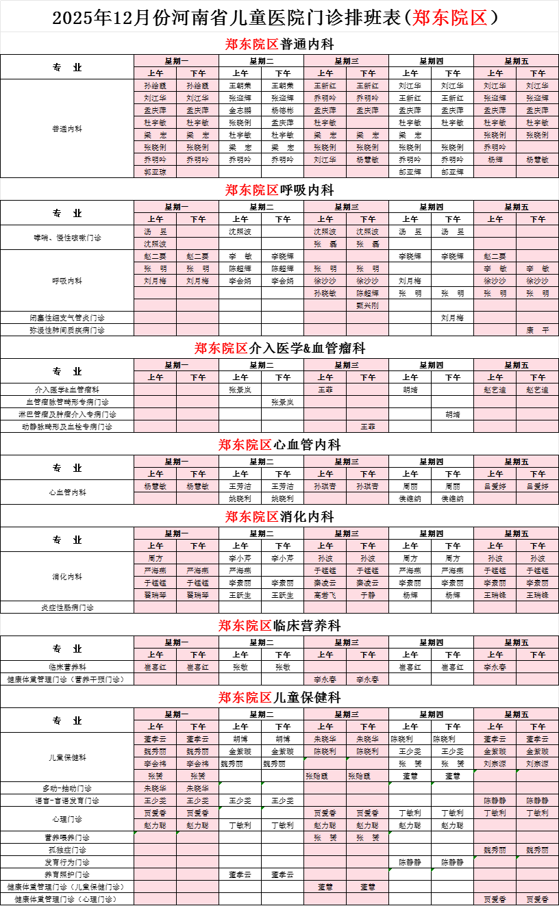 2025年12月份河南省兒童醫(yī)院鄭東院區(qū)專家坐診表