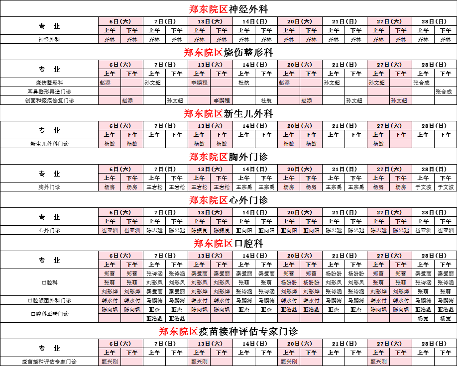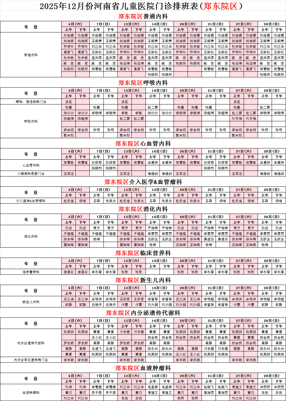 2025年12月份河南省兒童醫(yī)院鄭東院區(qū)專家坐診表(周末)