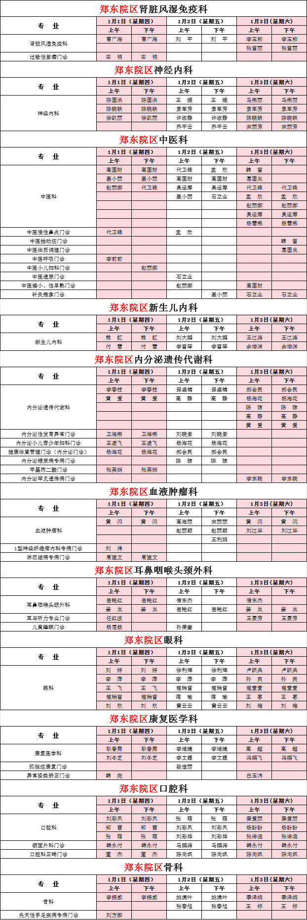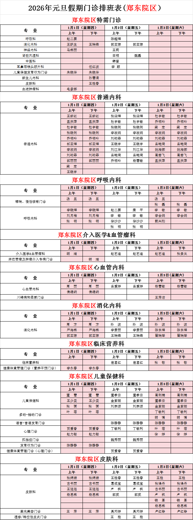 2026年元旦假期門診安排(鄭東院區(qū))