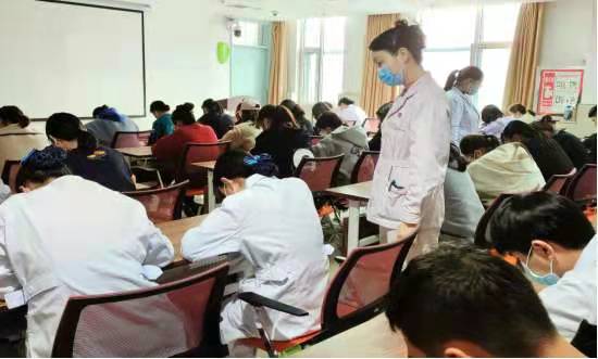 3月17日上午8:30,來(lái)自河南醫(yī)學(xué)高等??茖W(xué)校、黃河科技學(xué)院、鄭州衛(wèi)校、鄭州黃河護(hù)理職業(yè)學(xué)院等4所高校95名學(xué)員。借助信息化軟件,現(xiàn)場(chǎng)采用手機(jī)掃碼答題,由護(hù)理教研室秘書葛燕軍及班主任董鳳梅、張玉霞、李思靜、李瑞丹組織進(jìn)行現(xiàn)場(chǎng)監(jiān)考,考場(chǎng)秩序良好,學(xué)員有序作答。