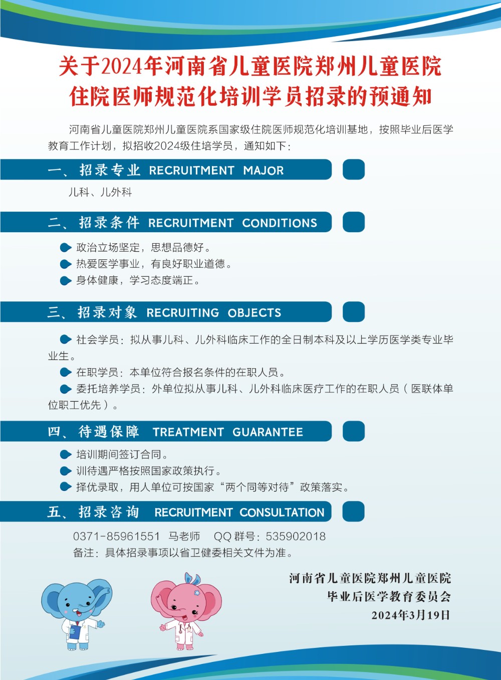 關(guān)于2024年河南省兒童醫(yī)院鄭州兒童醫(yī)院住院醫(yī)師規(guī)范化培訓學員招錄的預通知